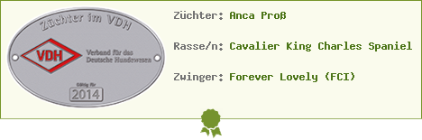 Unsere Zucht ist international im VDH, in der FCI und in unserem zuchtbuchführenden Verein, dem Internationalen Club für Cavalier-King-Charles-Spaniel e.V, eingetragen und geschützt.