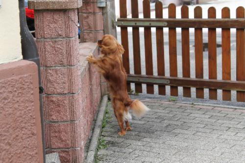 Da es im Urlaub nicht geklappt hat, versucht sie es nun auf unserer Terasse.